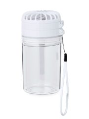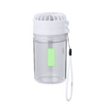 Bidon pratique avec ventilateur, fabriqué en Tritan et de capacité 350 ml . Sans BPA, avec couvercle étanche à vis qui comprend un ventilateur réglable en 3 niveaux d’intensité et de position. Avec une batterie de 1200 mAh et un couvercle supplémentaire pour une utilisation séparée. Il comprend un cordon de serrage pour un transport facile et est présenté individuellement en boîte kraft. Personnalisations possibles :SÉRIGRAPHIE F