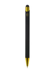 Stylo pointeur à mécanisme poussoir en aluminium recyclé. Bouton-poussoir, pince métallique et embout en finition brillante. Carrosserie finie en caoutchouc, spécialement conçue pour le marquage laser avec effet miroir. Aluminium recyclé distinctif sur le dessus du stylo. Chargeant le jumbo et à l’encre bleue. Personnalisations possibles :DIGITAL W1 (-5 cm2)