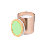 Bougie parfumée à la vanille. Présentée dans un pot en métal avec couvercle en bambou. Pot disponible dans une gamme variée de couleurs de finition métallisée. Présenté individuellement dans un boîtier design kraft.Des matériaux tels que le bambou encouragent l’utilisation de matières premières naturelles en réduisant les émissions polluantes. Il provient d’une plante très résistante et polyvalente, avec une croissance et une régénération rapides, étant une excellente alternative à l’utilisation du bois traditionnel.