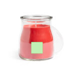 Bougie parfumée en pot de verre, disponible en senteurs assorties : blanc vanille baies rouges bleu océan et vert mousse. Avec label Made In Europe.