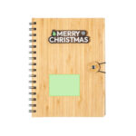 Carnet à anneaux Nature Line avec motif de Noël. Avec housses rigides en bambou et fermeture élastique d’origine. Comprend 80 feuilles avec une mise en page en ligne et une conception écologique.