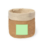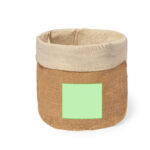 Corbeille à pain fabriquée avec du coton à l’intérieur et du jute à l’extérieur, avec un design rond. Présentée dans un sachet individuel recyclé