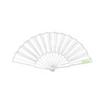 Éventail en plastique résistant et tissu polyester. Tiges et tissu disponibles dans une gamme de couleurs vives. Présenté en boîte individuelle à fenêtre.