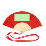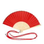 Éventail confectionné en tissu polyester résistant 190T et tiges flexibles en bambou. Comprend un cordon ajustable assorti au tissu et un mousqueton métallique pratique pour un transport facile.Des matériaux comme le bambou favorisent l’utilisation de matières premières naturelles réduisant les émissions polluantes. De plus, le bambou provient d’une plante très résistante et polyvalente, avec une croissance et une régénération rapides, constituant une excellente alternative à l’utilisation de bois traditionnel.