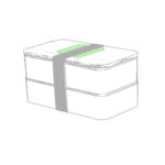 Boîte à lunch de 1,4 l en PP résistant veiné sans BISPHÉNOL A, avec couvercle en bambou. Deux compartiments, chacun d’une capacité de 700 ml. Compartiment intérieur avec fourchette, cuillère et couteau. Comprend du ruban adhésif de sécurité extérieur. Certification de qualité alimentaire, garantissant la sécurité lorsque les aliments entrent en contact avec le matériau utilisé pour fabriquer le produit.