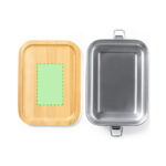 Boîte à lunch d’une capacité de 800 ml, en acier inoxydable. Avec couvercle en bambou hermétique et sans BPA. Présenté dans une boîte design kraft individuelle.