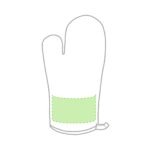 Gant de cuisine en 100% polyester doux, blanc avec liserés aux couleurs vives. Avec une face lisse spécialement prévue pour la sublimation. Cordon d´accroche.