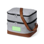 Glacière en RPET 600D résistant. Finition grise, avec base et bandoulière pour le transport en similicuir marron. Comprend 2 compartiments indépendants, avec fermeture éclair et tirette en métal. Interieur isotherme en aluminium et etiquette extérieure RPET. Le matériau RPET est fabriqué à partir de plastique recyclé, afin de favoriser la réutilisation des déchets plastiques et d’aider à la durabilité de la planète.