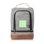 Réfrigérateur en RPET 600D résistant. Fini en gris, avec base et poignée de transport en similicuir marron. Comprend 2 compartiments indépendants, avec fermeture éclair et poignées en métal. Intérieur isotherme en PEVA et étiquette extérieure avec RPET distinctif.Le matériau RPET est fabriqué à partir de plastique recyclé, afin de favoriser la réutilisation des déchets plastiques et d’aider à la durabilité de la planète.