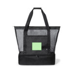 Sac glacière en polyester résistant RPET 600D fabriqué à partir de plastique recyclé pour favoriser la réutilisation des déchets plastiques et contribuer à la durabilité de la planète. Compartiment principal en filet maillé, avec fermeture éclair. Glacière intégrée dans la base, en polyester résistant 600D RPET, avec intérieur isotherme en PEVA. Poignées de transport renforcées et grande poche avant, avec étiquette RPET sur l’exterieur.
