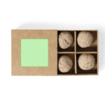 Kit de jardin avec des graines de tomate, basilic, roquette et camomille. Présenté dans un étui en carton recyclé avec des instructions de plantation, badge Made in Europe et avec 4 compartiments indépendants.