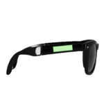 Lunettes de soleil pliables avec protection UV400, fabriquées en PC Recyclé. Monture pliable résistante avec un design élégant et une finition brillante de couleur noire. Les lentilles sont de couleur noire pour garantir le style. Présentées dans une housse blanche de forme ronde avec fermeture à glissière.