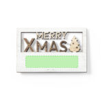 Aimant original Merry Christmas en bois naturel, avec texte découpé et une finition bicolore originale. Grande surface de marquage et caractéristique Made In Europe.