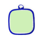 Manique de cuisine en 100% polyester doux, blanche avec liserés aux couleurs vives. Avec une face lisse spécialement prévue pour la sublimation. Cordon d´accroche.