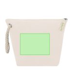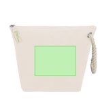 Trousse fabriquée principalement en coton recyclé 240 g/m². Compartiment principal avec fermeture éclair. Dotée d’un cordon original pour un transport facile, fixé par un anneau argenté. Comprend une étiquette extérieure avec le logo coton recyclé.