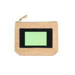 Trousse de toilette polyvalente en combinaison de jute laminé et de coton naturel. Avec fermeture à glissière et poignée en jute assortie. Partie centrale en coton de couleurs variées.