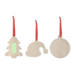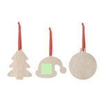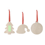 Ornement de Noël en bois naturel doux. Modèles disponibles : chapeau du Père Noël, sapin de Noël et boule de Noël. Inclus un ruban rouge pour suspendre. Spécialement conçu pour l’impression par sublimation.Fabriqué à partir d’éléments d’origine végétale pour promouvoir l’utilisation de matières premières naturelles et réduire les émissions polluantes.