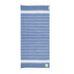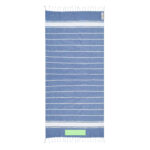 Douce serviette paréo en 100% coton recyclé de 180g/m2. Disponible dans une gamme variée de couleurs dans un ton bicolore. Logo en étiquette latérale. Présenté individuellement en sac.