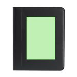 Dossier élégant PU recyclé. Fermeture éclair, 4 compartiments intérieurs PU recyclé, support stylo, bloc-notes 25 pages blanches inclus.