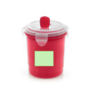 Pot de 710 ml en PP résistant, spécialement conçu pour les liquides. Dans une large gamme de tons vifs, avec couvercle translucide avec 4 fermetures, anneau de sécurité intérieur et unité de dosage intégrée. Poignée ergonomique de couleur assortie.