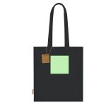 Sac avec un gousset à la base et sur les côtés, principalement fait de coton recyclé de 140g/m2. Il possède de longues poignées renforcées de 70 x 2,5 cm. Comprend le badge en coton recyclé. Résistance jusqu’à 8 kg de poids.
