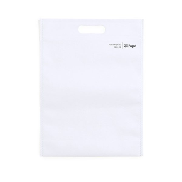 Sac nature line, en non-tissé recyclé de 70g/m2. De fabrication européenne, avec une finition thermoscellée, des soufflets à la base, une poignée découpée renforcée et un éco/made in distinctif sur le sac.