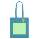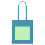 Sac coton recyclé 140 g/m². Poignées longues 70 cm renforcées, finition cousue. Logo sur étiquette latérale. Résistance jusqu’à 6 kg.