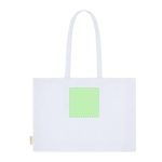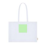 Sac avec gousset à la base et sur les côtés, principalement fait de coton recyclé de 220g/m2. Il possède de longues poignées renforcées de 70 x 2,5 cm. Comprend le badge en coton recyclé. Résistance jusqu’à 10 kg de poids.