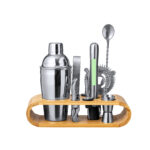 Set de cocktail élégant en inox. Set complet qui combine des concepts modernes et traditionnels. Comprend tous les ustensiles essentiels pour configurer les meilleurs cocktails. Avec base en bambou original pour stocker et exposer tous les ustensiles. Présenté en boîte de conception kraft distinguée.Accessoires inclus :- 1 shaker- 1 mortier- 1 bécher de 15/30ml- 1 pince à glace- 1 filtre- 1 ouvre-bouteille/tire-bouchon- 1 cuillère à café- 2 bouchons doseurs