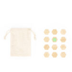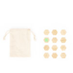 Ensemble d’aimants en bambou. Comprend 12 pièces pentagonales sculptées en bambou avec aimant pour fixer des annotations, des photos, etc., sur n’importe quelle surface métallique. Présenté dans un sac en coton. Des matériaux tels que le bambou encouragent l’utilisation de matières premières naturelles en réduisant les émissions polluantes. Il provient d’une plante très résistante et polyvalente, avec une croissance et une régénération rapides, étant une excellente alternative à l’utilisation du bois traditionnel.