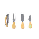 Ensemble de fromages et de vins avec des accessoires en acier inox résistant, avec poignée en bambou. Accessoires présentés dans un étui original en carton ondulé, avec intérieur découpé pour chacun. Il comprend des ustensiles pour fromages durs, mous et découpés en morceaux, et un ouvreur à deux temps avec lame coupe-capsule.Des matériaux tels que le bambou encouragent l’utilisation de matières premières naturelles en réduisant les émissions polluantes. Il provient d’une plante très résistante et polyvalente, avec une croissance et une régénération rapides, étant une excellente alternative à l’utilisation du bois traditionnel.
