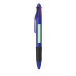 Stylo multicolore fabriqué en ABS recyclé résistant. Avec un manche en finition caoutchouc. 4 en 1 avec mécanisme de poussée rétractable. De 4 cartouches en encre bleue, rouge, noire et verte. Avec le logo distinctif de la RABS.