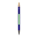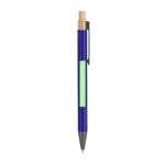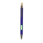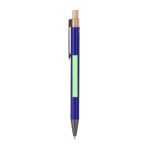 Stylo à boutons-poussoirs en aluminium recyclé. Bouton-poussoir en bambou avec corps gris mat. Clip et embout noirs. Chargeant le jumbo et à l’encre bleue.