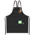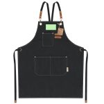 Tablier de haute qualité en coton canvas recyclé 350 g/m² résistant, avec coutures renforcées. Coupe sous le genou, avec lanières en coton solide et double réglage : dos et taille. Comprend poches avant, détail en simili cuir et rivets métalliques renforcés. Étiquette distinctive incluse.
