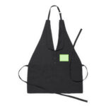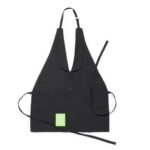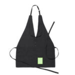 Tablier élégant avec décoration de boutons en matière 100% polyester. Avec tour de cou et sangles de taille réglables.