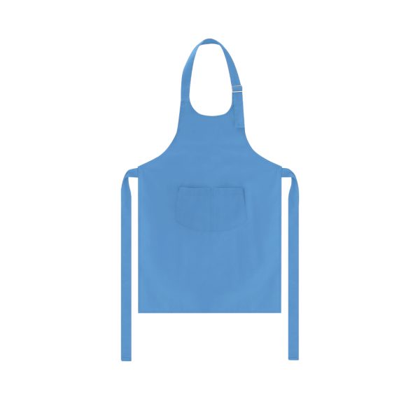 Delantal infantil de alta calidad fabricado en combinación de algodón y poliéster. Con práctico bolsillo doble frontal y cintas de cuello con ajustador cromado. De corte por debajo de la rodilla que proporciona una excelente cobertura.