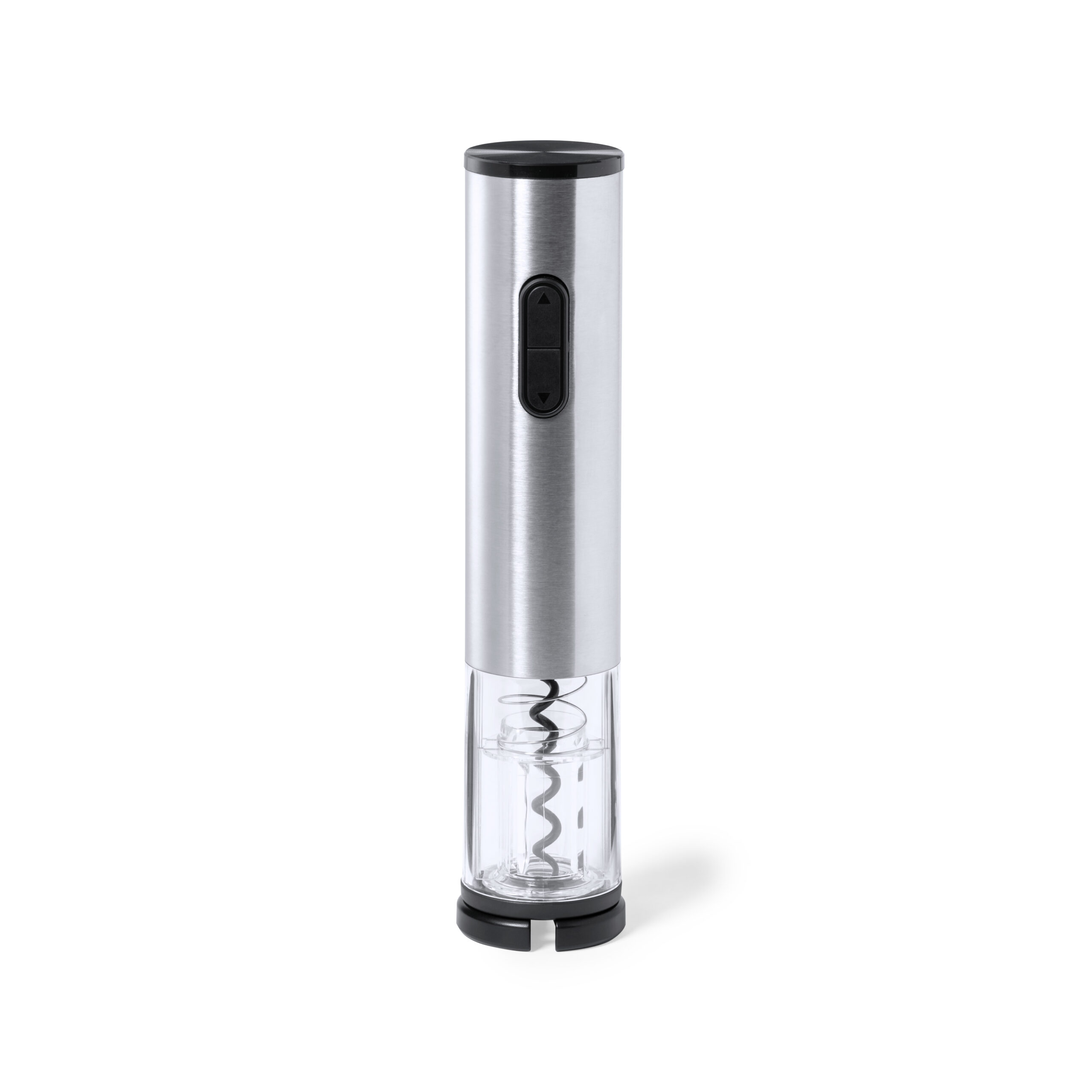 Tire-bouchon électrique en acier inoxydable et ABS résistant, avec coupe capsule inclus. Présenté dans une boîte individuelle design, avec un manuel d’instructions en espagnol et en anglais. Fonctionne sur piles (4xAA non incluses).