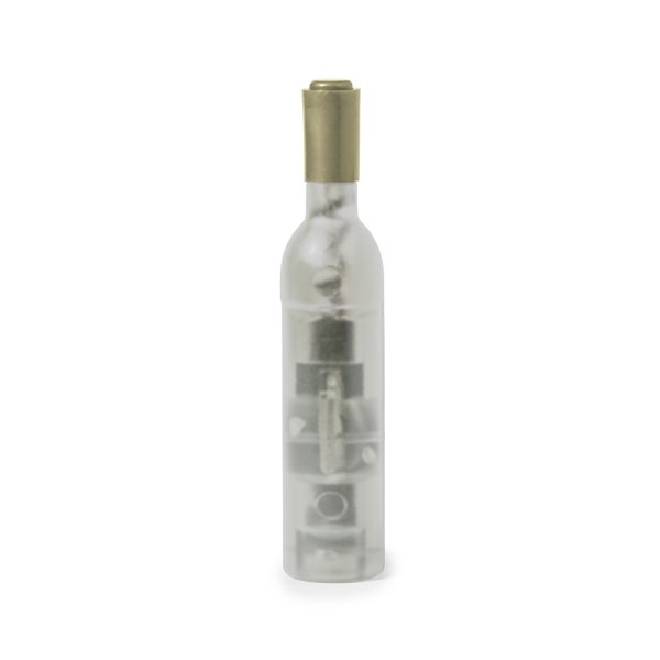 Amusant tire-bouchon magnétique en forme de bouteille de vin aux motifs blanc, rouge et rose. Avec corps en finition translucide d´origine et fonction d´ouverture.