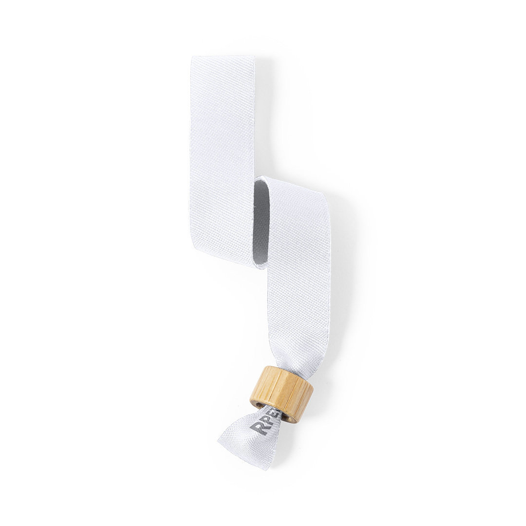 Bracelet événementiel de la ligne nature. Fabriqué en polyester RPET 160g/m2, fabriqué à partir de plastique recyclé pour encourager la réutilisation des déchets plastiques et contribuer à la durabilité de la planète. Avec régleur en bambou et disponible dans une large gamme de couleurs, blanc spécialement conçu pour la sublimation. RPET distinctif imprimé sur le bracelet.