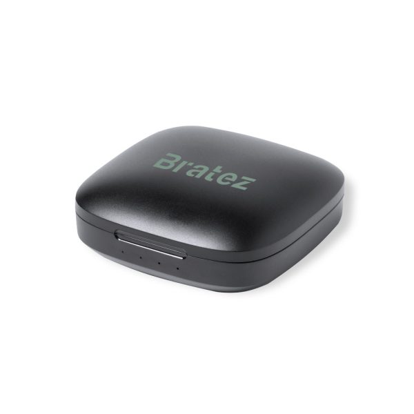 Casque intra-auriculaire Bluetooth Antonio Miró, design et élégant, finition noire mate. Connexion Bluetooth® 5.0, avec batterie au lithium de 30 mAh intégrée dans chaque écouteur. Conception ergonomique, avec bouton de commande tactile sur l’écouteur et fonction mains libres. Base de charge assortie avec le logo de la marque, capacité de 300 mAh et indicateur LED de l’état de charge. Le câble de chargement Type C assorti est inclus et présenté dans une boîte noire individuelle avec le logo Antonio Miro. Manuel d’instruction disponible en espagnol et en anglais.