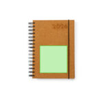 Agenda format A5 en cuir recyclé élégant et durable. Avec couvertures rigides et fermeture élastique. Avec cuir recyclé distinctif.Mise en page du jour, zone d’annotation par jour et pages avec un coin découpé pour marquer le jour. En 2 langues : espagnol et anglais. Présenté dans une boîte kraft.Le cuir recyclé récupère les fibres rejetées dans les processus de fabrication du cuir, minimisant les déchets de matériaux, aidant à réduire l’impact environnemental tout en conservant ses propriétés d’origine.