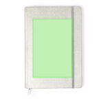 Bloc-notes en similicuir avec des couleurs métalliques saisissantes. Disponible en or, argent et or rose. Avec couvertures rigides, poignée élastique et signet en tissu assorti. Comprend 80 feuilles lisses avec une finition de couleur naturelle.