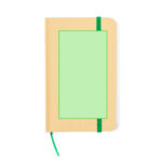Bloc-notes avec couvertures souples en carton naturel résistant. 100 feuilles vierges, avec bande élastique et signet de couleur assortie.