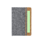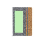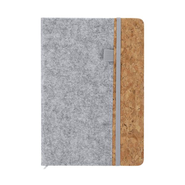 Bloc-notes avec couvertures rigides élaborées en combinaison de feutre RPET et de liège. Inclut 80 feuilles à lignes avec élastique de maintien pour stylos sur la couverture, bande élastique de fermeture et marque-page assorti. Inclut un label RFELT.Élaboré avec des éléments végétaux pour favoriser l’utilisation de matières premières naturelles et réduire les émissions polluantes.Le feutre RPET est le résultat de la combinaison du processus de recyclage des matériaux plastiques avec la technique millénaire de fabrication du feutre, donnant ainsi un matériau éco-tendance qui, en plus d’être d’origine recyclée, est également recyclable.