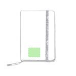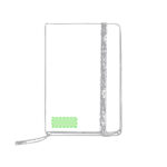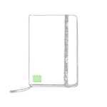 Bloc-notes avec couverture rigide au toucher doux, finition blanche. 100 feuilles unies avec tranche contrastée dans des couleurs amusantes. Fermeture par élastique et marque-page en tissu assorti.
