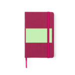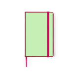 Bloc-notes en éco-cuir au toucher doux. Avec des couvercles durs et des marque-pages dans une gamme de couleurs variée. De 100 feuilles lisses avec un élastique de fixation pratique correspondant.