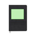Cahier A5 en RPET élégant. Couvertures rigides avec finition tissu. Comprend une bande élastique sur la couverture, idéale pour maintenir un téléphone, et un porte-stylo élastique. Intérieur avec 80 pages lignées, marque-page en ruban assorti et pochette au dos. Livré avec un stylo à encre bleue, corps en aluminium finition caoutchoutée, clip métallique et action par bouton-poussoir. Étiquette logo RPET incluse.