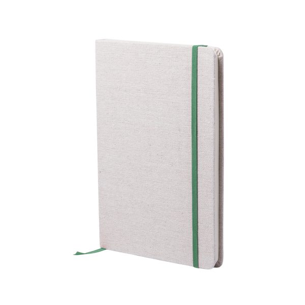 Bloc-notes en matériaux naturels. Housses en coton doux de couleur naturelle. Avec élastique de fermeture et marque-page aux couleurs assorties et attrayantes. Comprenant 80 feuilles unies.