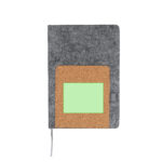 Bloc-notes avec couvertures rigides, en feutre RPET. Comprend une poche en liège cousue sur la couverture. Contient 80 pages à rayures simples, un marque-page et un porte-stylo élastique assorti. Avec logo RPET sur la couverture arrière.Le matériau RPET est fabriqué à partir de plastique recyclé, favorisant ainsi la réutilisation des déchets plastiques et contribuant à la durabilité de la planète.