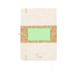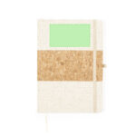 Bloc-notes avec des couvertures dures en liège et en lin. Avec porte-stylo, signet et 80 feuilles simples de couleur naturelle. Présenté dans un sac individuel.Fabriqué avec des éléments à base de plantes pour promouvoir l’utilisation de matières premières naturelles et réduire les émissions polluantes.